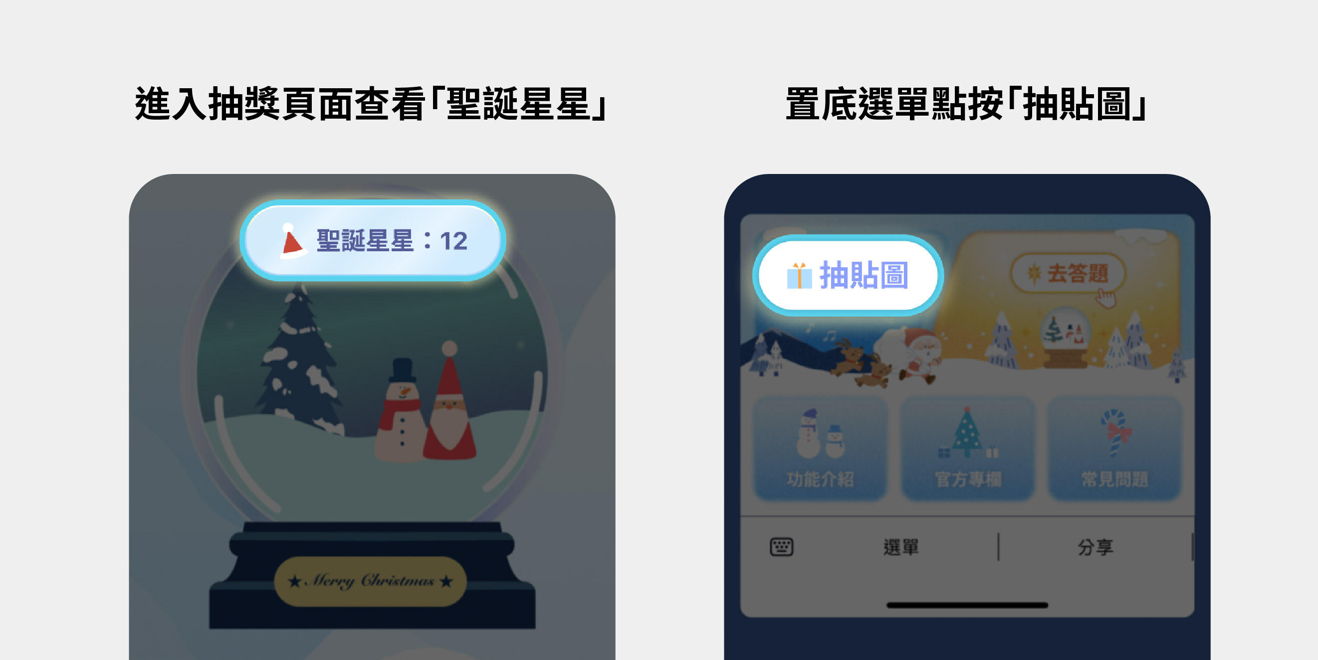 今年推出了「聖誕知識王」挑戰各種聖誕冷知識,只要每天到活動頁面答題,就能蒐集「聖誕星星」,換取限時推出的 限定動態貼圖!無論你是對聖誕文化無比熱愛、或想挑戰每日問答,這次的活動你一定喜歡!